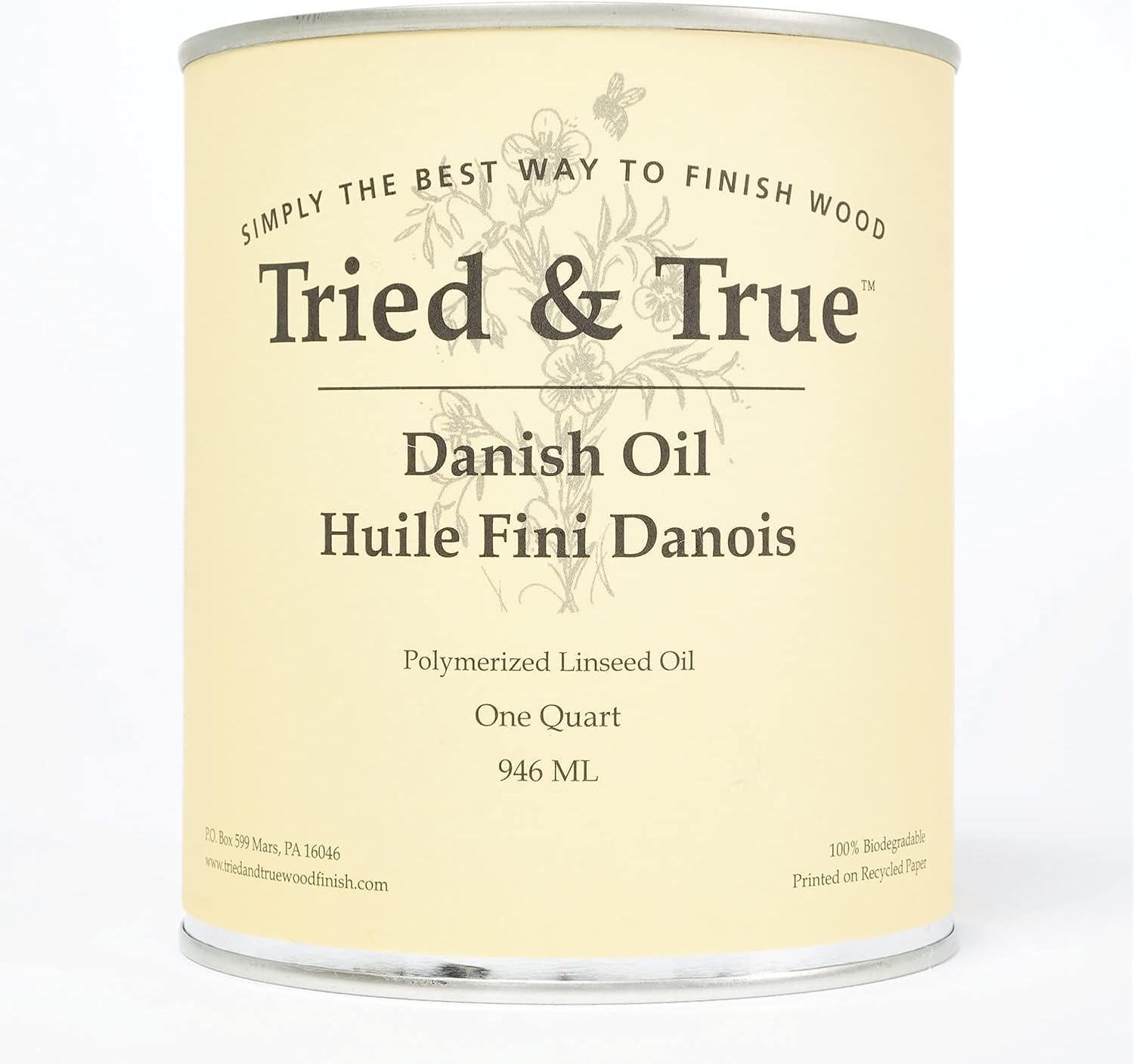 Tried & True Danish Oil, Quart – Pure Polymerized Linseed Oil Wood Finish, Ideal for Furniture, Rustic Pieces, & Priming Wood for Other Oil or epoxy-Based Products – Food Safe, Simple, Fast Curing